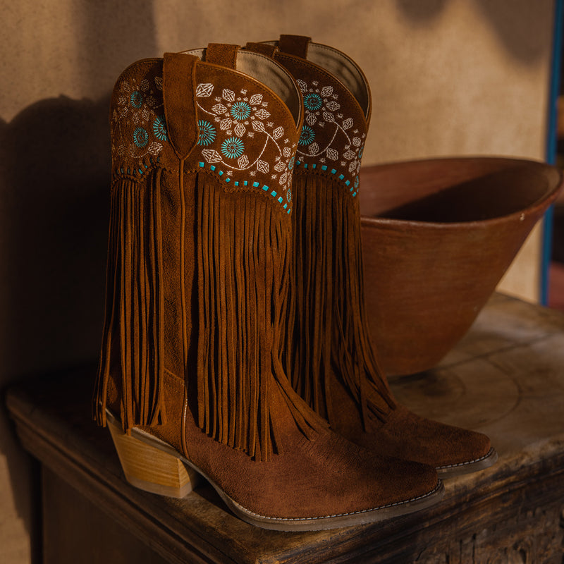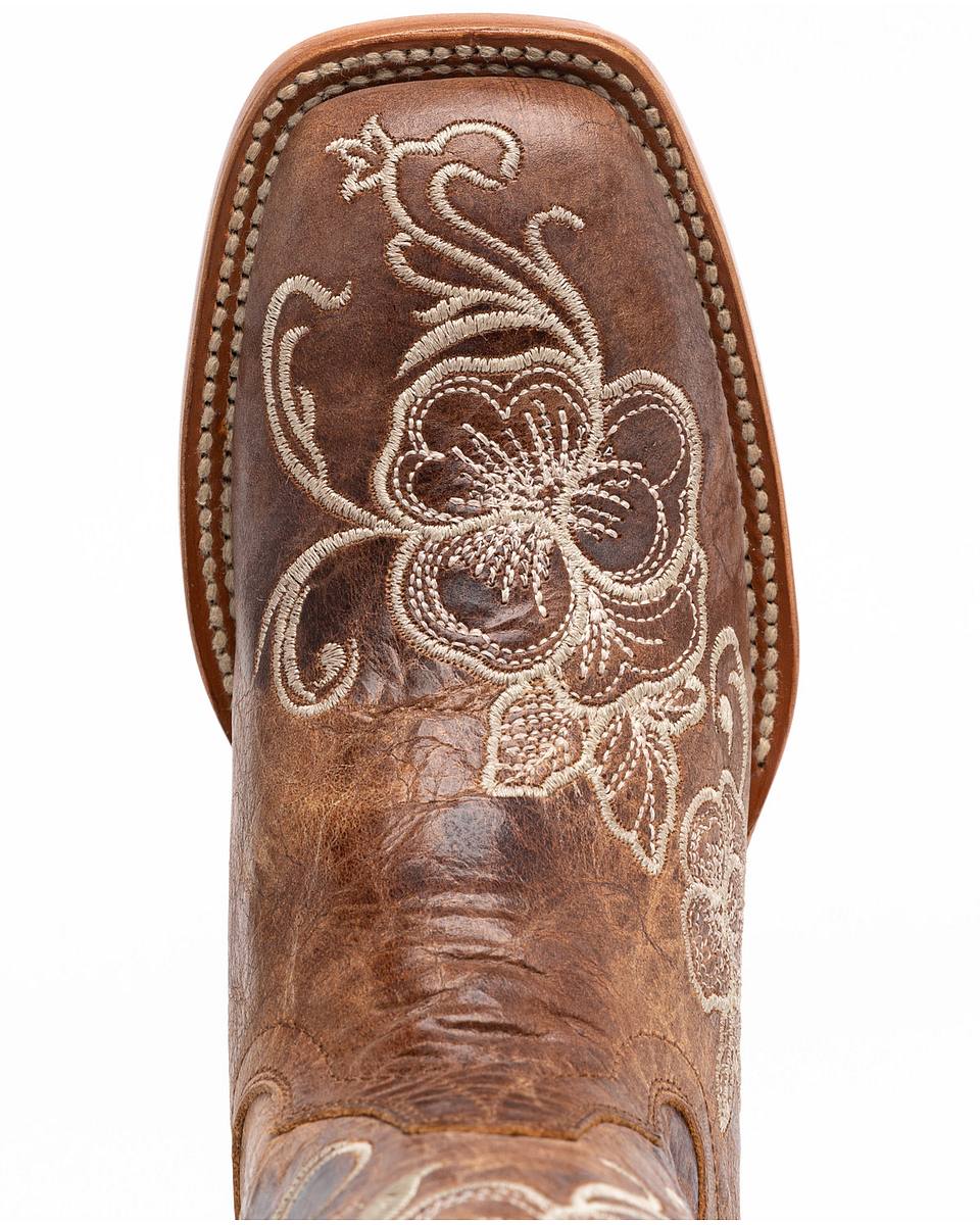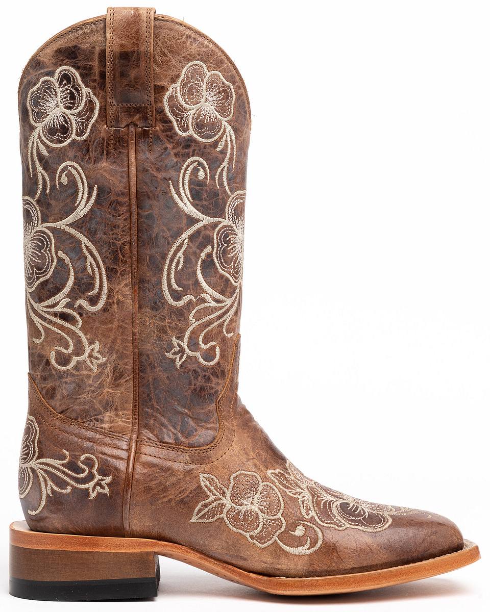 Women's Lasy Floral Embroidered Western Boots - Broad Square Toe - Brown / 5 1/2 CW is backordered and will ship as soon as it is back in stock.